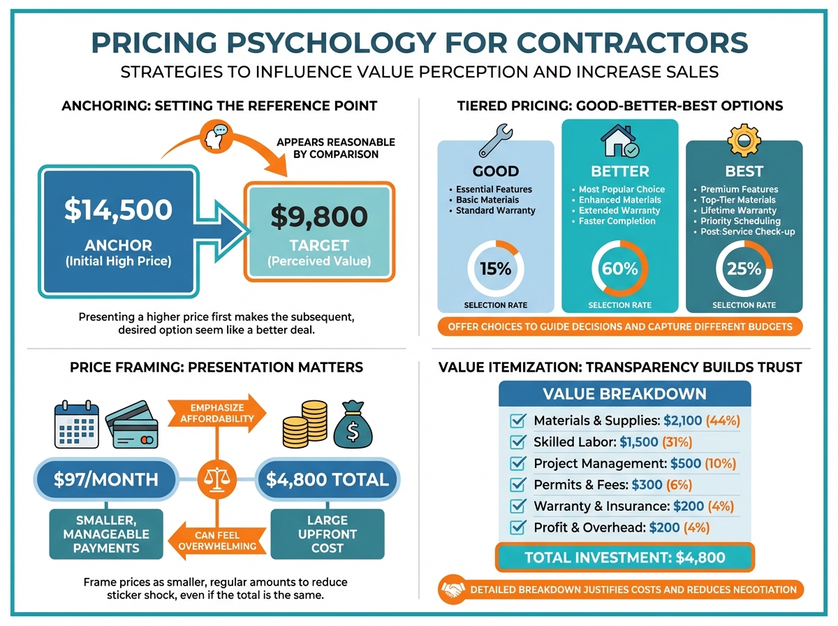 Pricing isn't just math. It's psychology. How you present your prices matters as much as what you charge. The contractors who understand this close more deals at better margins—without being sleazy or manipulative.